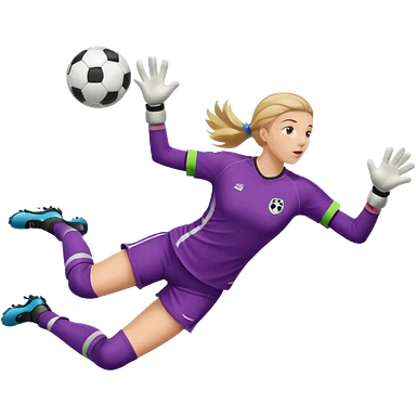 make a girl goalie diving through the air with a soccer ball in her hands emoji