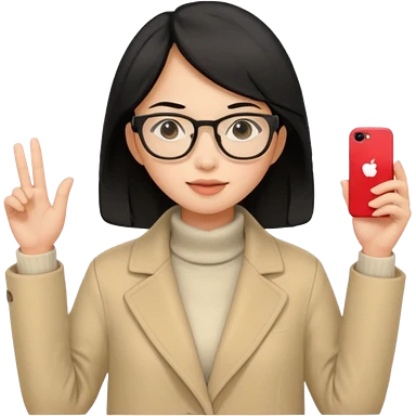 Asian girl with short hair girl holding iphone 17 pro orange emoji