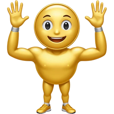 athletic coin with eyes, mouth, arms and legs emoji