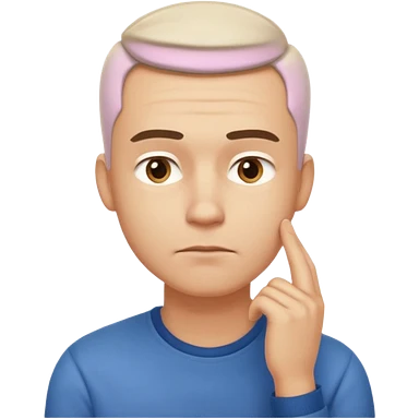 A clean-shaven man in casual clothing thinking critically, touching his chin with one hand, eyebrows slightly furrowed, focused and analytical expression. Neutral background, soft lighting, realistic emoji style. emoji