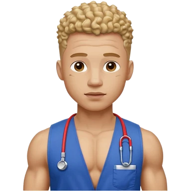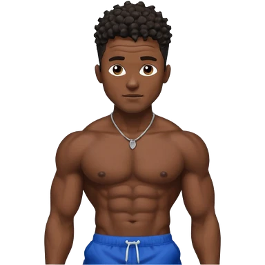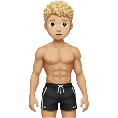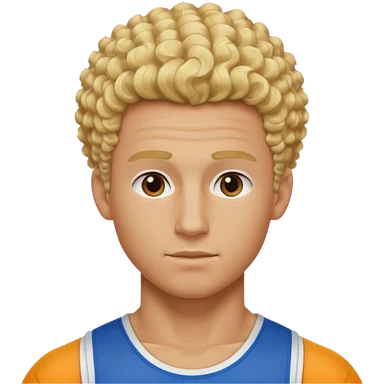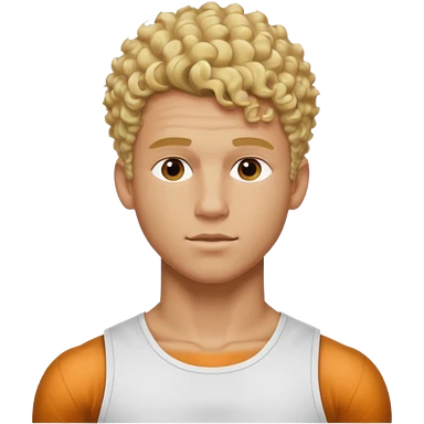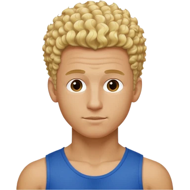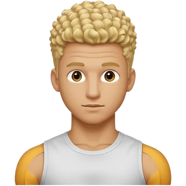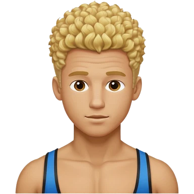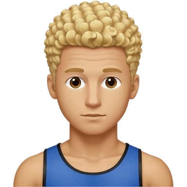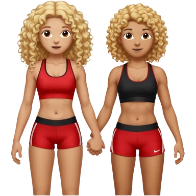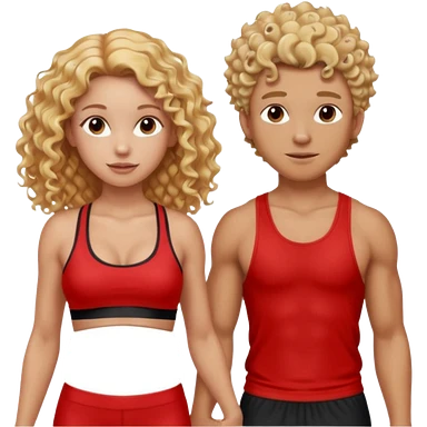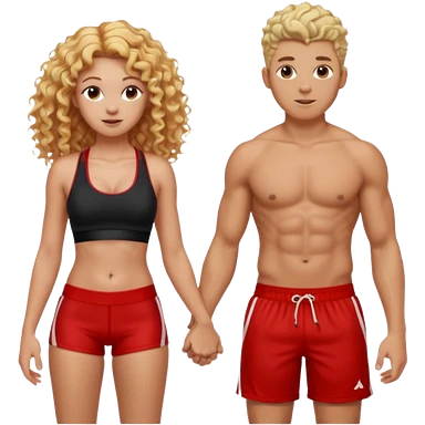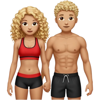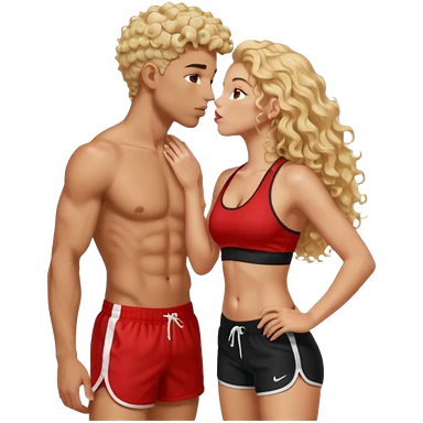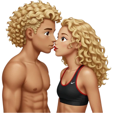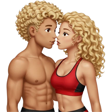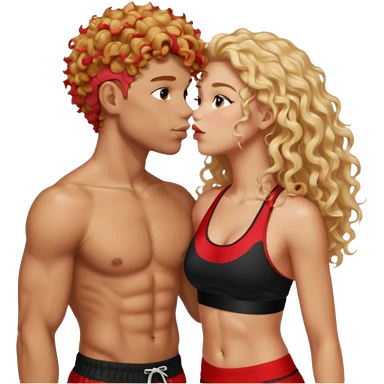 athletic man, high top fade, blonde curly hair only top only, no shirt and Athletic girl with long wavy red hair and black sports bra, Put them together kissing, or holding hands emoji | AI Emoji Generator