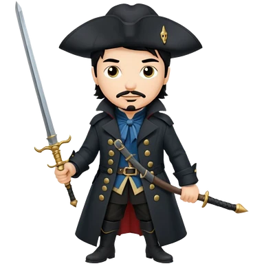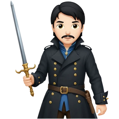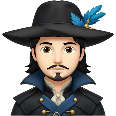 Athos, black hair, musketeer in black trench coat emoji | AI Emoji Generator