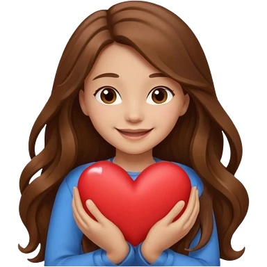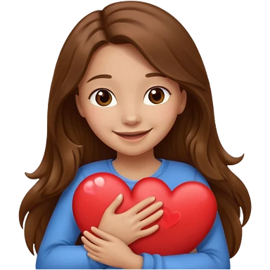 Long Brown hair smiling girl light skin hugging a heart emoji