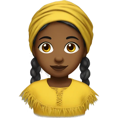 seorang perempuan berambut panjang namun tdk panjang sekali, memakai baju batik sekolah biru muda bermotif garis garis biru muda emoji