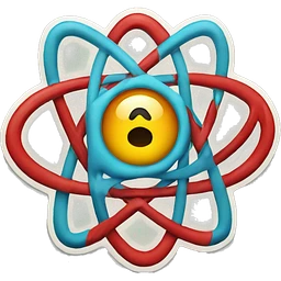 An atom with small blue and red spheres at the center and white spheres orbiting around the exterior emoji