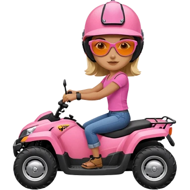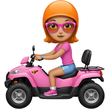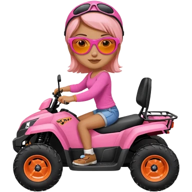 Atv ride girl in orange atv, pink top ,with sunglasses emoji