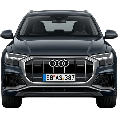 Audi q8 e tron sportback siyah plakadada 58 AS 387 yazsın plaka Türkiye plakasından olsun mavi yerde TR Ve plakanın üstünde beyaz yerde başka şeyler olmasın sadece değim olsun bunu Emoji için yap emoji