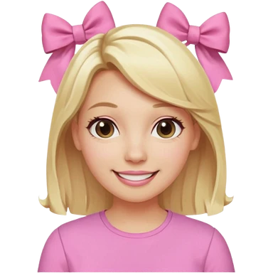 A mom with blonde hair and pink shirt coquett aesthetic style like bows and pink emoji