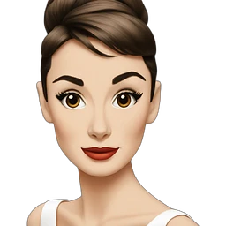 Audrey Hepburn portrait with classic updo hairstyle and elegant look emoji