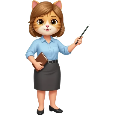 mulher gato de olhos castanhos em pé dando aula em faculdade, não em um auditorio emoji