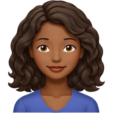Happy face with smile, dark brown skin color black women wavy hair shoulder length, eyes slightly closed emoji