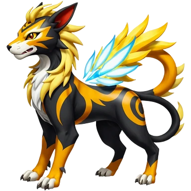 Shiny Glowing Legendary Epic Solgaleo-Pyroar-Torracat-Luxray-Tigress-Houndoom-Liger-Hybrid-Fakemon-hybrid-Creature (full body) emoji