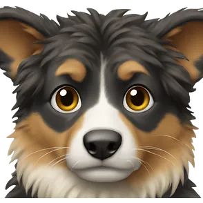 Aussie doodle with light and dark brown fur with tuffs of grey emoji