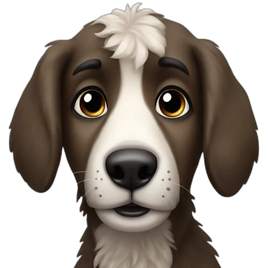 Aussie doodle with light and dark brown fur with tuffs of grey emoji