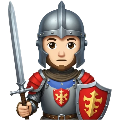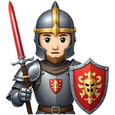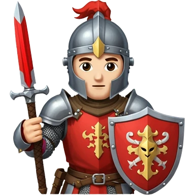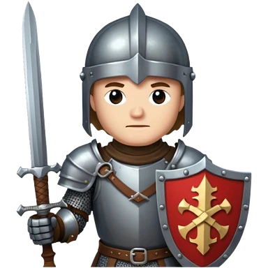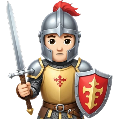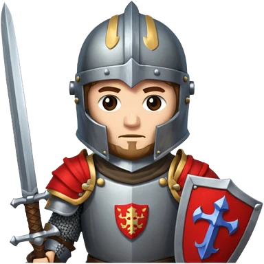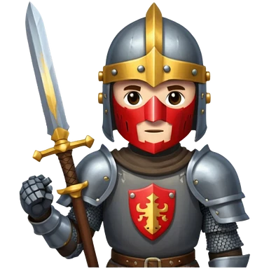 give me medieval knight with a helm, and he has a gauntlet holding a sword. style can be a bit pixelated /8bit emoji