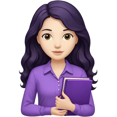 Long Hair Women with purple Book, Black wavy hair, beige shirt emoji
