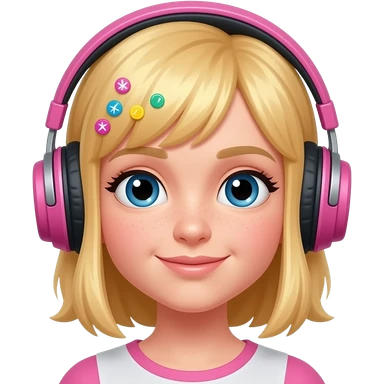 Autistic blond girl with headphones pink with multicolor pins With autist symbol emoji
