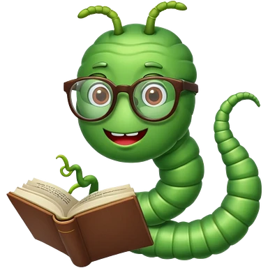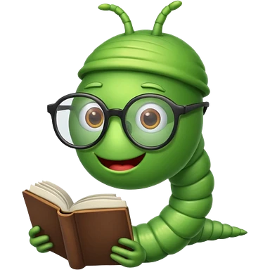 green Worm with glasses reading book emoji