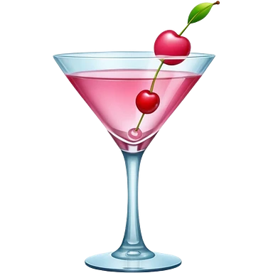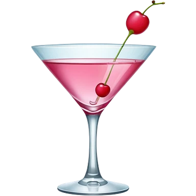 A pink martini in a V-shaped glass with a tiny cherry floating on top. emoji