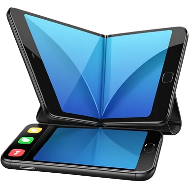 Foldable phone halfway open.Folded paper map with creases. Foldable laptop or tablet hybrid. emoji