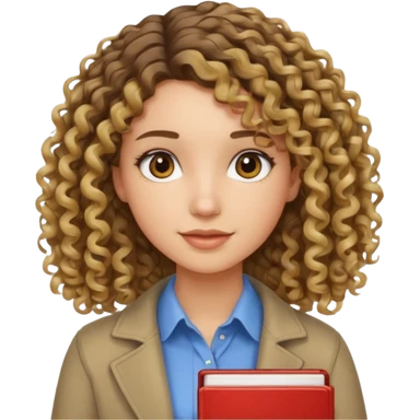 estudiante universitaria morocha de rulos hasta los hombros con mechitas rubias emoji