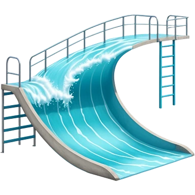 An artificial wave pool with turquoise blue water creating a perfect wave for surfing, surrounded by a gentle edge, with a ladder. emoji