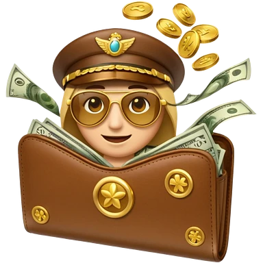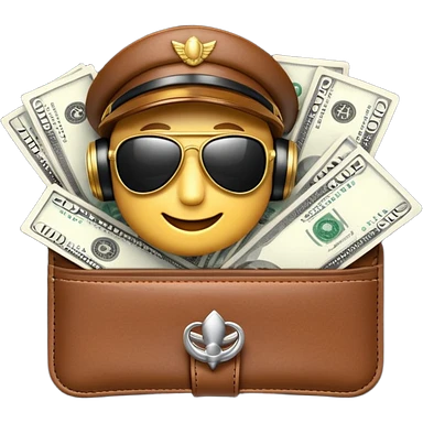 Aviator money emoji, wallet full of cash, casino vibe, premium 3D emoji style, clean, no background emoji | AI Emoji Generator