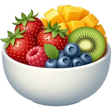 fruit bowl with strawberries rapsberries kiwi blueberries mango emoji