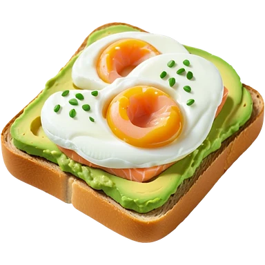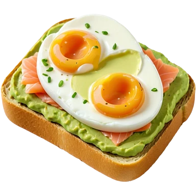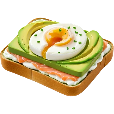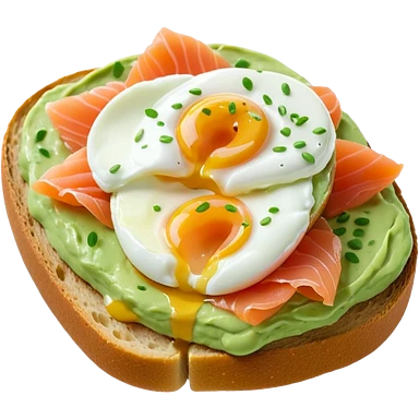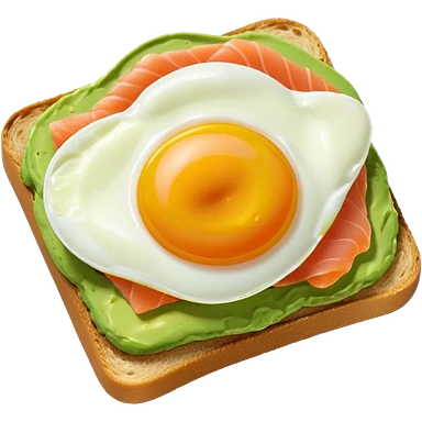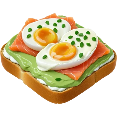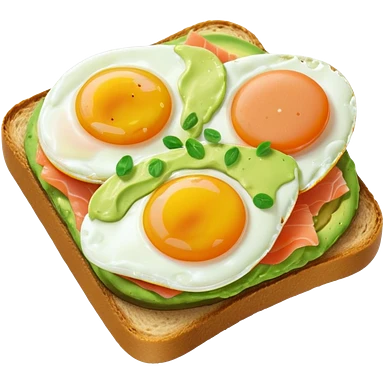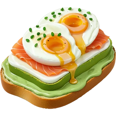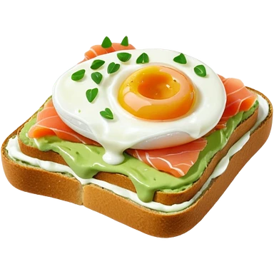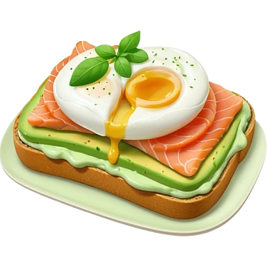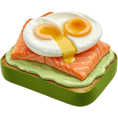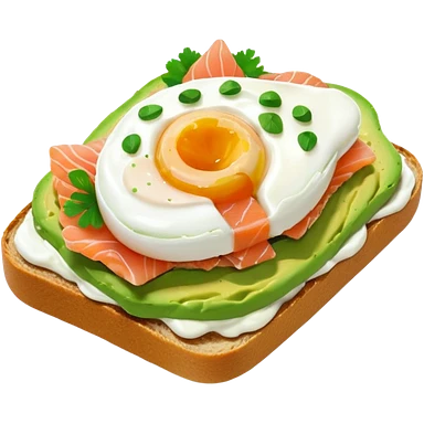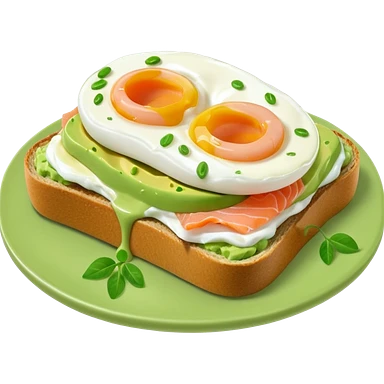 avocado toast with salmon and pachot eggs, green cream is covering everything emoji