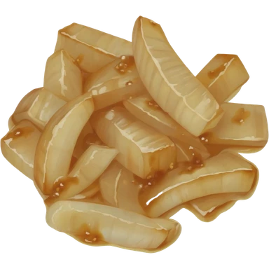 sliced caramelized onions, soft golden brown sauteed onion strips, poached onion pieces, food emoji, 3D style emoji