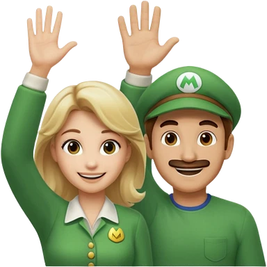 blonde female Luigi and a normal brown hair male mairo. They are friends! Maybe highfiving or just smiling emoji