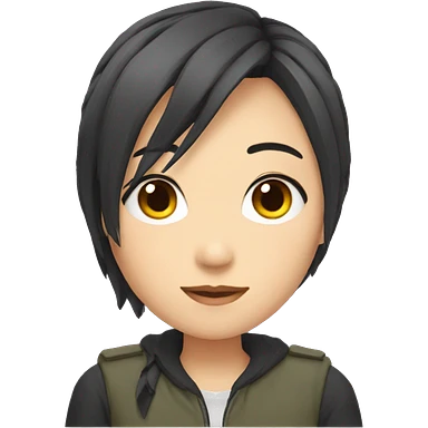 Aya Brea, woman, blonde hair, short hair, blue eyes, big breasts, slim body, leather vest, blue jeans. emoji