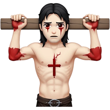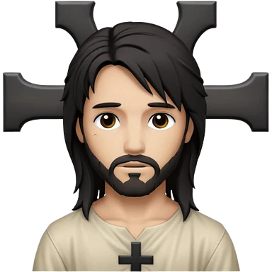 jesus-body-on-the-cross, with black edgy Emo hair emoji