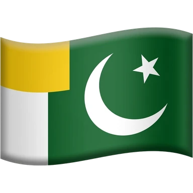 Azad Kashmir flag with 4 geen strips in between 4 white strips with uper left corner yellow square and on right square with green rectangle with small moon and star ini t emoji