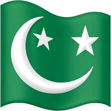Azad Kashmir flag with 4 geen strips in between 4 white strips with uper left corner yellow square and on right square with green rectangle with small moon and star ini t emoji