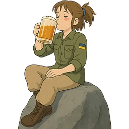 Azov-chan drinking beer while sitting on a big rock emoji | AI Emoji Generator