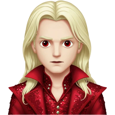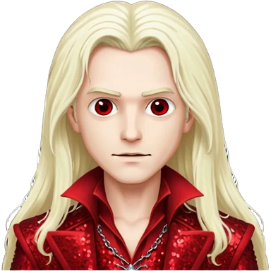 Alucard, Son of Dracula with long platinum blonde hair, dark red sequin outfit emoji