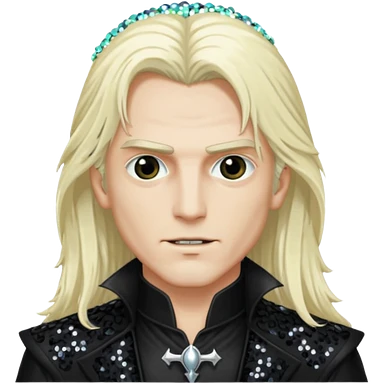 Alucard ,Son of Dracula with long blonde hair, black sequin outfit emoji