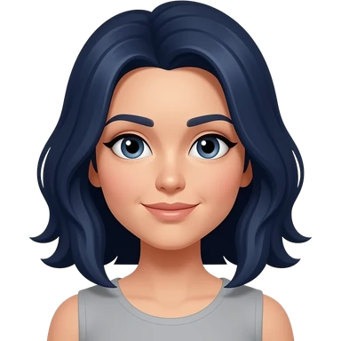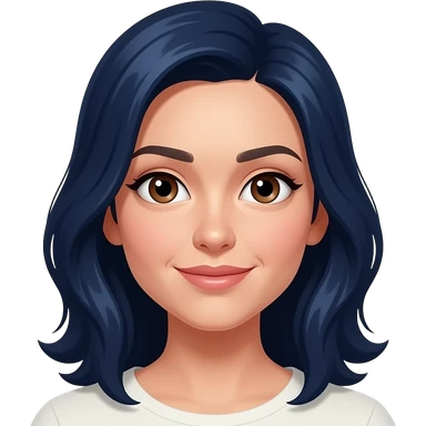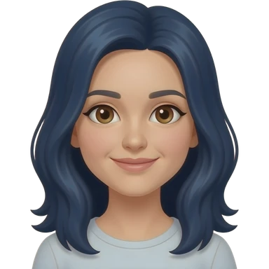 cabello azul oscuro fuerte y liso ,mujer y ojos cafés emoji
