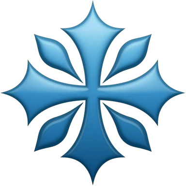 Cruz azul latina estilizada (Los cuatro brazos tienen una estructura ensanchada hacia los extremos, formando una silueta tipo “trébol puntiagudo” o “lanza”, perfectamente centrada y alineada. emoji