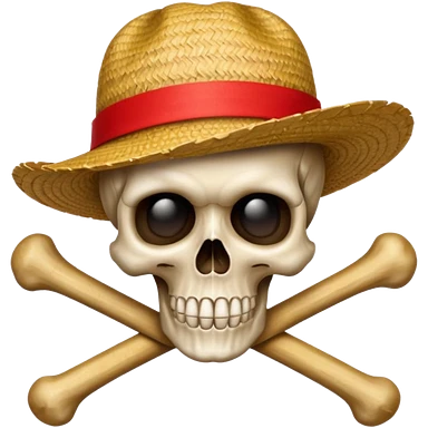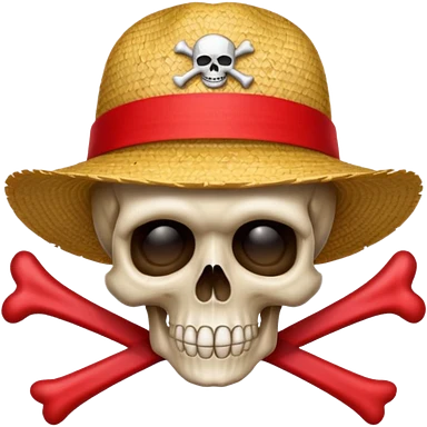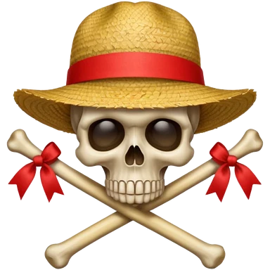 Skull and crossbones wearing a straw hat with the ribbon being red emoji