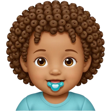 BΓ©bΓ© qui rigole mΓ©tisse avec une tetinΓ© dans la bouche et les cheveux bouclΓ©s emoji