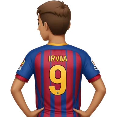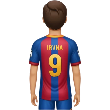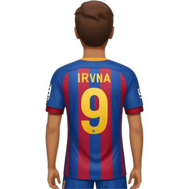 buat costum seperti diatas buat mirip hanya pakaian saja tidak pakai orang dan dari belakang barcelona nama punggung irvina dan nomor punggung 9 menghadap belakang emoji