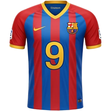 buat costum seperti diatas buat mirip hanya pakaian saja tidak pakai orang dan dari belakang barcelona nama punggung irvina dan nomor punggung 9 emoji