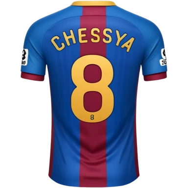 buat custom barcelona hanya bajunya saja dan menghadap belakang nama chessy dan nomor punggung 8 menghadap belakang emoji