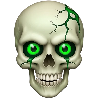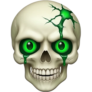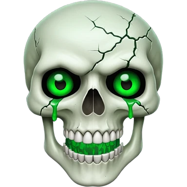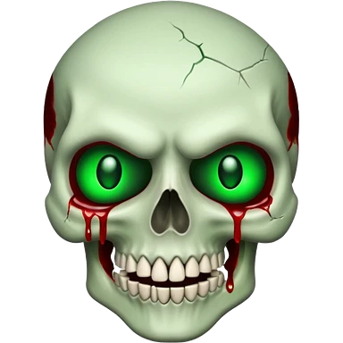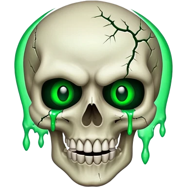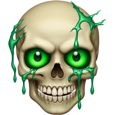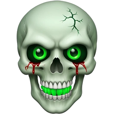 Bleeding skull with glowing green eyes and a sinister smile emoji