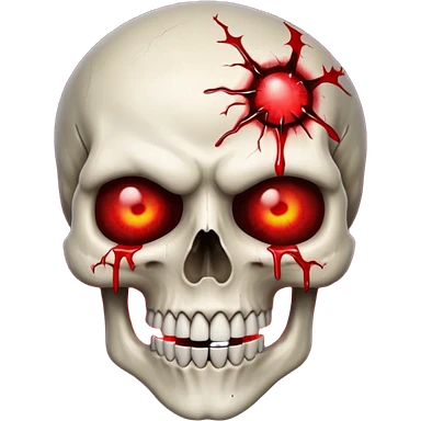 Bleeding skull with glowing red eyes and a chunk missing on top. With a transparent background emoji