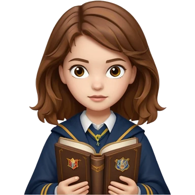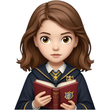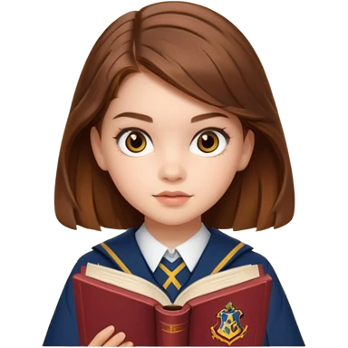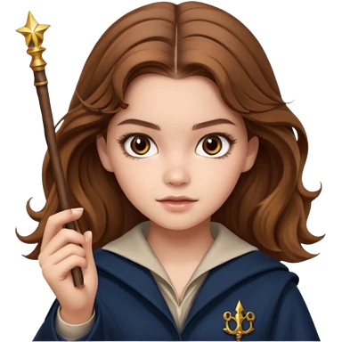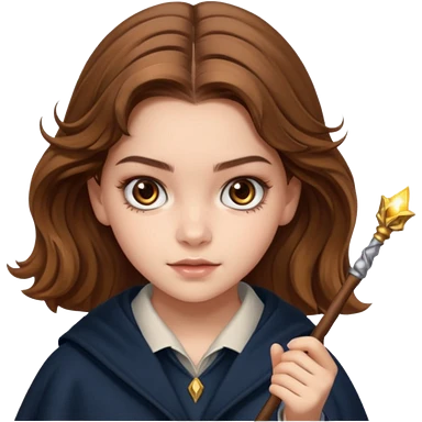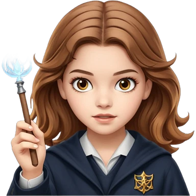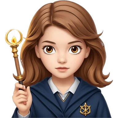 Barbara Palvin as Hermione Granger with brown eyes and doing magic emoji