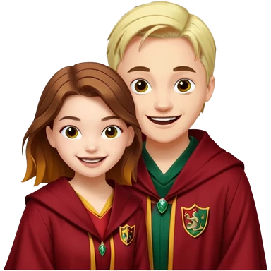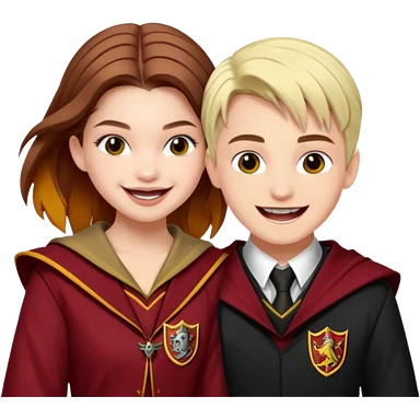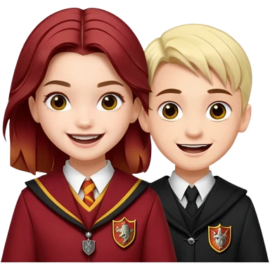 Barbara Palvin as a gryffindor laughing with Draco Malfoy emoji