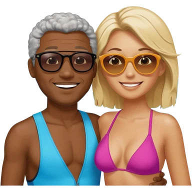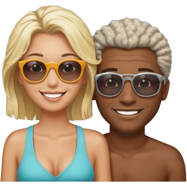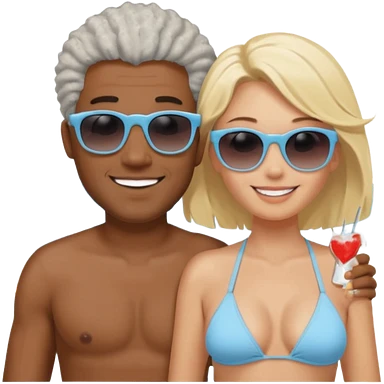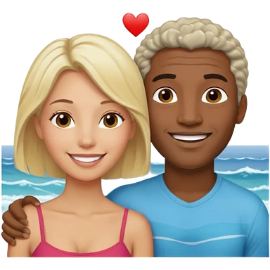 Black man salt n pepper hair smiling with blonde in love on beach emoji